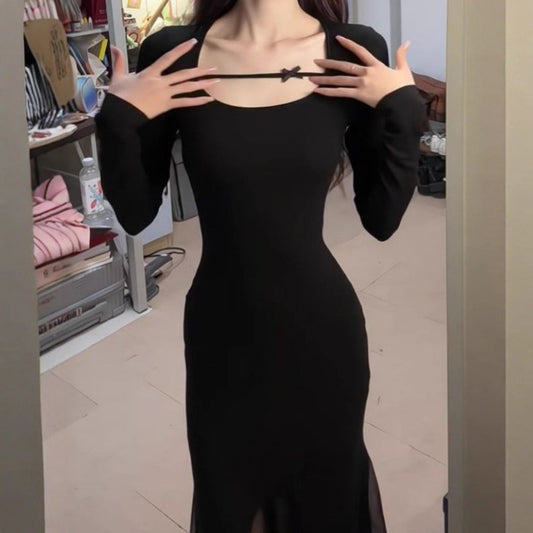 French-style fashion slim-fit long-knit dress