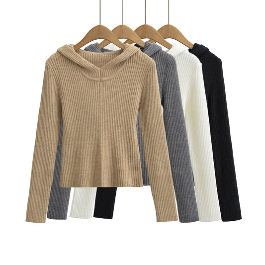 Hooded long sleeved top sweater