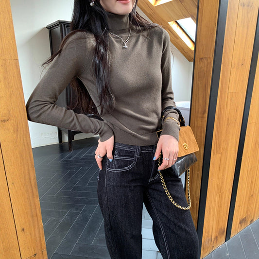 High Neck Knit Sweater Top for Women, Slim Fit, Elegant Inner Layer