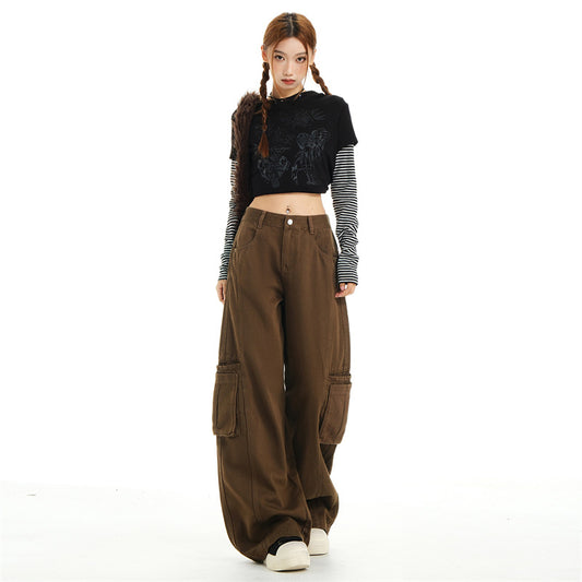 khaki cargo wide-leg jeans for women